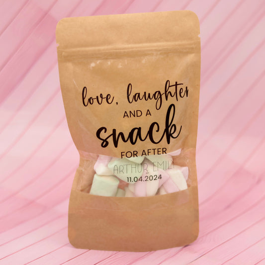 4 oz Wedding Favor Bags, Love Laughter and a Snack Bag, Thanks For Popping By Popcorn Bags, Reception Favor Bag, Personalized Favor Bag